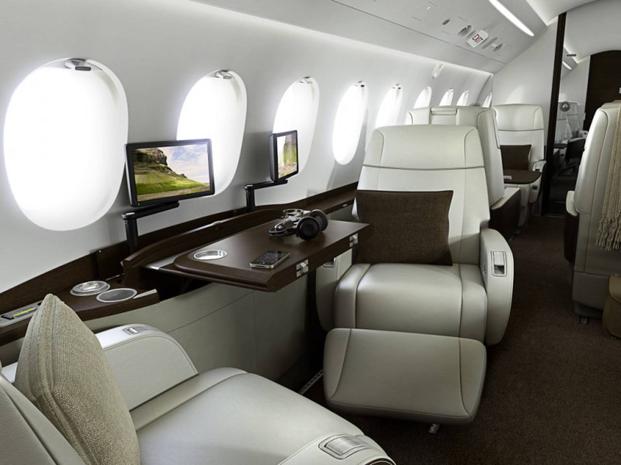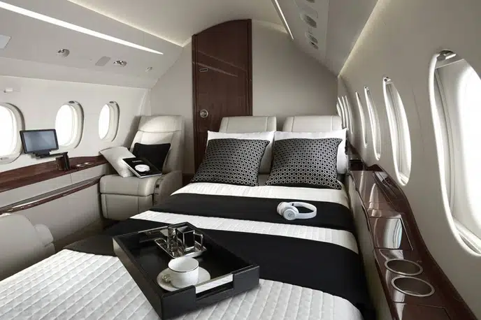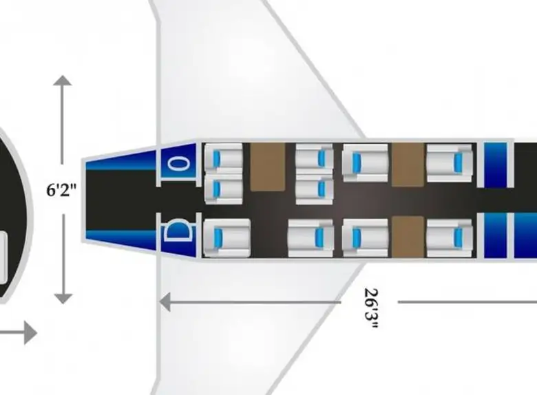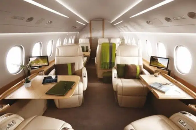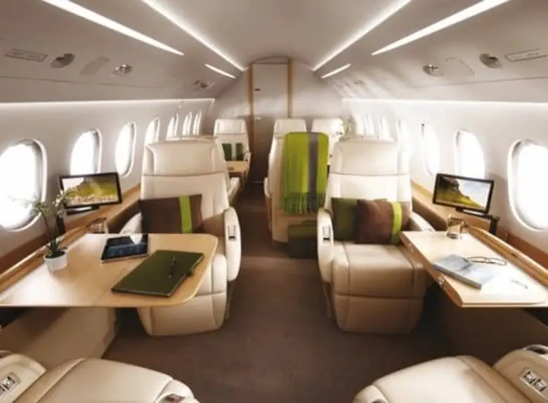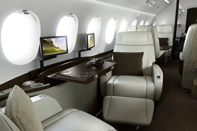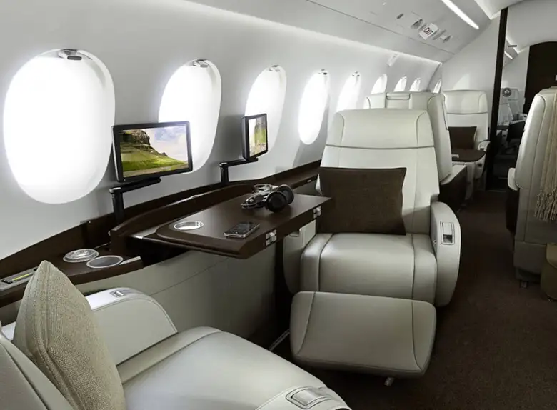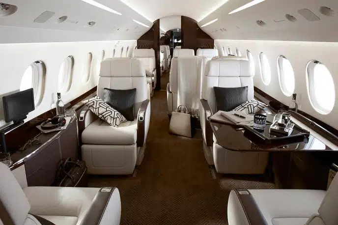 - Spacious Cabin: The Falcon 2000S offers a generous cabin for a super-midsize jet, typically accommodating 8 to 10 passengers in a comfortable configuration. It utilizes the same wide fuselage cross-section as the larger Falcon 900 series, providing ample headroom and width.
