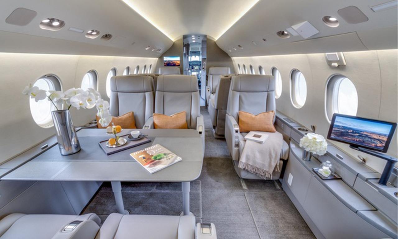 Falcon 2000S LX-MIC accommodates up to 10 passengers. The baggage compartment volume of 3.7 m³ can hold up to 11 large suitcases . The maximum flight range reaches 6200 km, depending on payload and weather conditions.