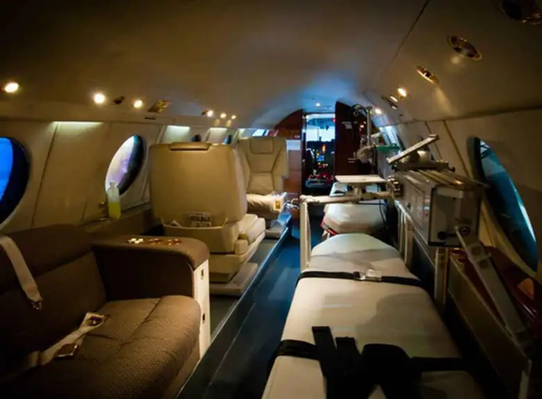 Available onboard amenities include Adult critical care , Lavatory , Medical ramp .