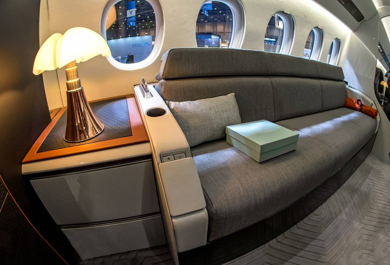 “The Falcon 6X is being created for a new market segment,” says Jean Rosanvallon, “there was a temptation to make it shorter than the long-range Gulfsеream 650, but we really felt that the market needed an aircraft with a range of 5000 nautical miles (9260 km). On the Falcon 6X, you can fly in a comfortable cabin anywhere in the world with one intermediate landing. The market reaction to this project was positive. ” Onboard an aircraft of an administrative type Dassault Falcon 6X can accommodate up to 16 passengers, however, according to experts, one of the negative points is the minimum required number of crew members - 3 people, on the other hand, given the fact that the aircraft is primarily focused on corporate customers, problems in orders from the French aircraft manufacturer should not arise. The design of the Dassault Falcon 6X in its appearance is quite similar to the Dassault Falcon 7X model, however, the amount of free space, as well as the length of the fuselage itself, is much larger, which makes passenger transportation more comfortable. Dassault strives to make the 6X the most reliable and easiest maintenance aircraft ever built by a renowned French company. Scheduled maintenance will be performed every 800 hours of flight (or every 12 months). The manufacturer intends to offer customized service programs. Moreover, Dassault is developing a new onboard monitoring and control system that will track more than 10 thousand parameters - somewhat similar to those orange “boxes” that are used during flight tests. In this case, the performance indicators of the systems will be transmitted to the manufacturer in real-time. The factory warranty will cover more warranty cases than before. Despite comparisons with the G650, the new Falcon is conceived as a direct competitor to the Gulfstream G450 (with a range of 4200 nautical miles, but far from new) and the Bombardier Global 5000 (with a range of 5400 nautical miles, but very gluttonous). The indisputable advantages of 6X - significantly less empty weight, improved aerodynamics and new engines, whose fuel efficiency is 10-15% higher than that of competitors - will allow him to beat both rivals in terms of fuel efficiency by a third. Dassault claims that 5X direct operating costs will be 30% lower than the G450, and 35% lower than the Global 5000.
