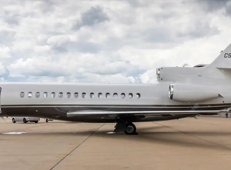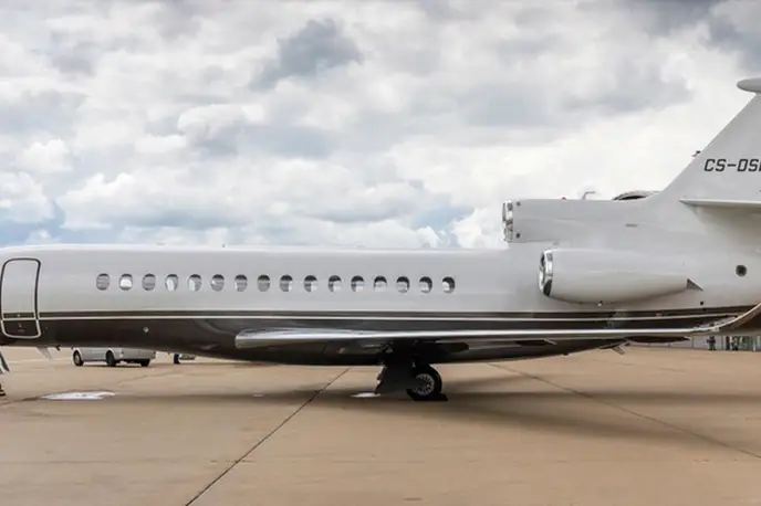 Falcon 8X CS-DSF accommodates up to 9 passengers. The baggage compartment volume of 4.0 m³ can hold up to 11 large suitcases . The maximum flight range reaches 11945 km, depending on payload and weather conditions.