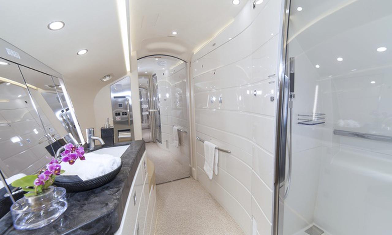 Available onboard amenities include Cabin crew , Hot meal , Lavatory , Owner's approval required , Pets allowed , Satellite phone , Shower .
