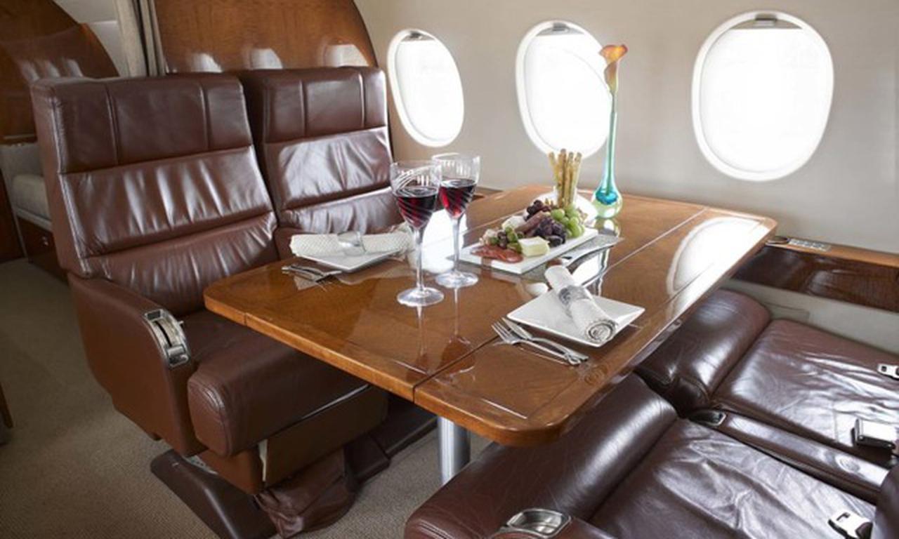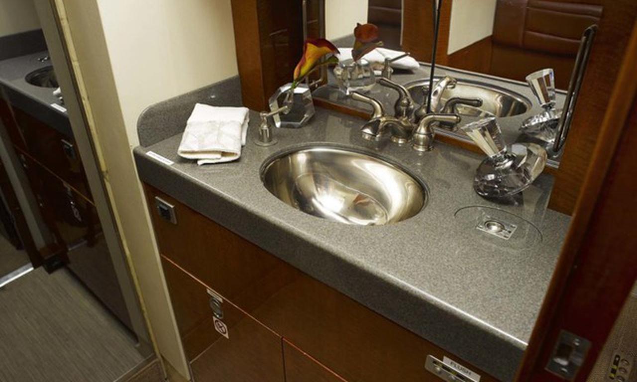 Available onboard amenities include AirShow , Coffee pot , Convection oven , Leather seats , Microwave oven , Pets allowed , Satellite phone , WI-FI (Ground based) .