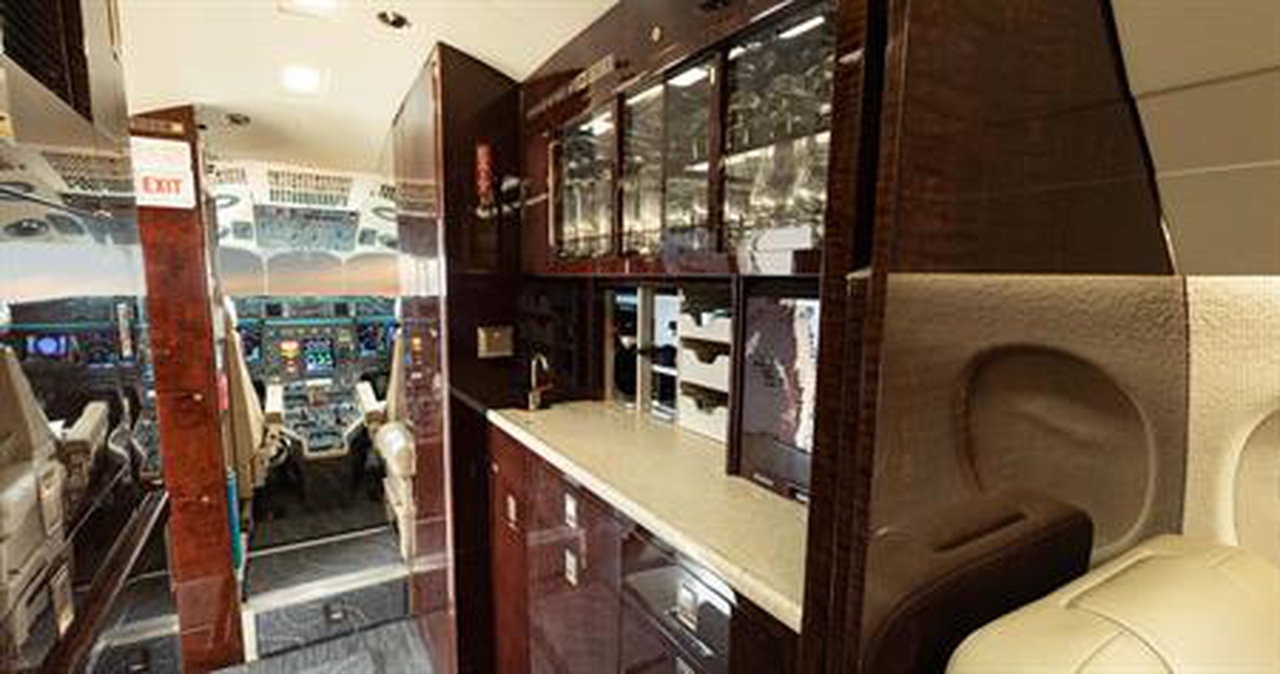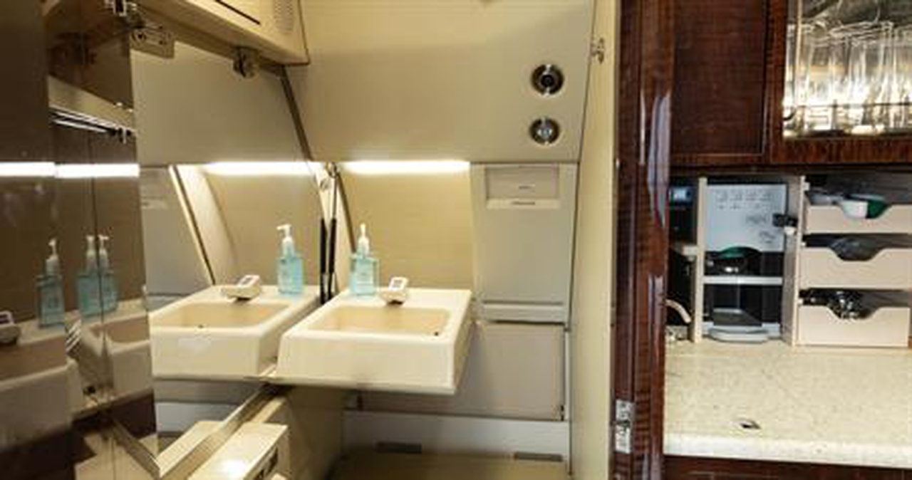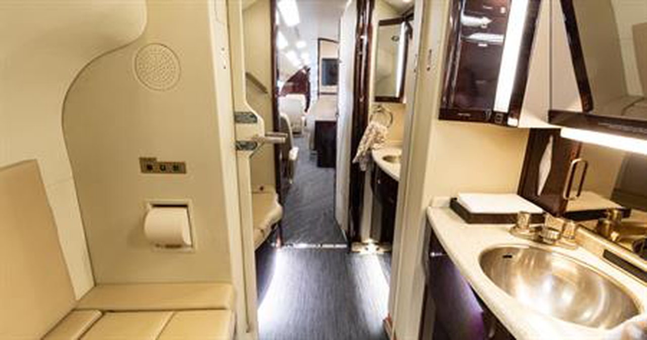 Available onboard amenities include Cabin crew , Enclosed lavatory , Freon Air conditioning , Full galley , Hot meal , Lavatory , Leather seats , Satellite phone .