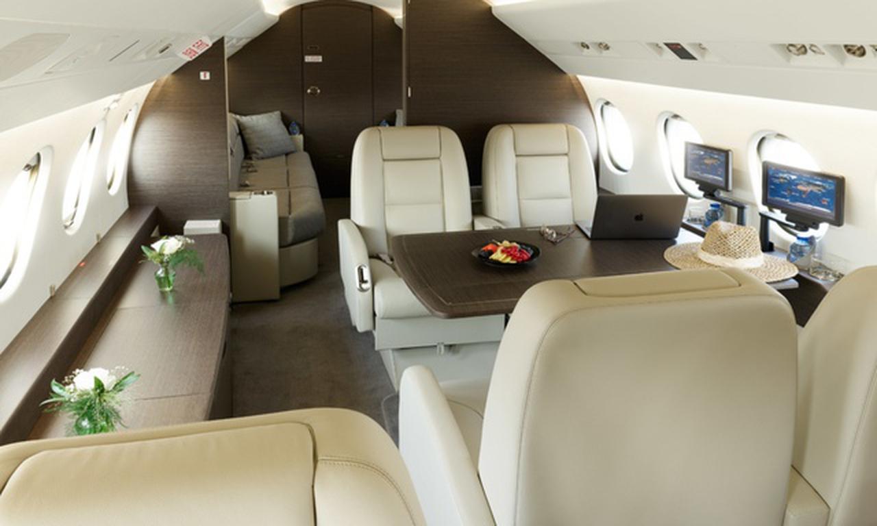 Falcon 900EX PH-LAU accommodates up to 14 passengers. The baggage compartment volume of 3.6 m³ can hold up to 10 large suitcases . The maximum flight range reaches 8334 km, depending on payload and weather conditions.