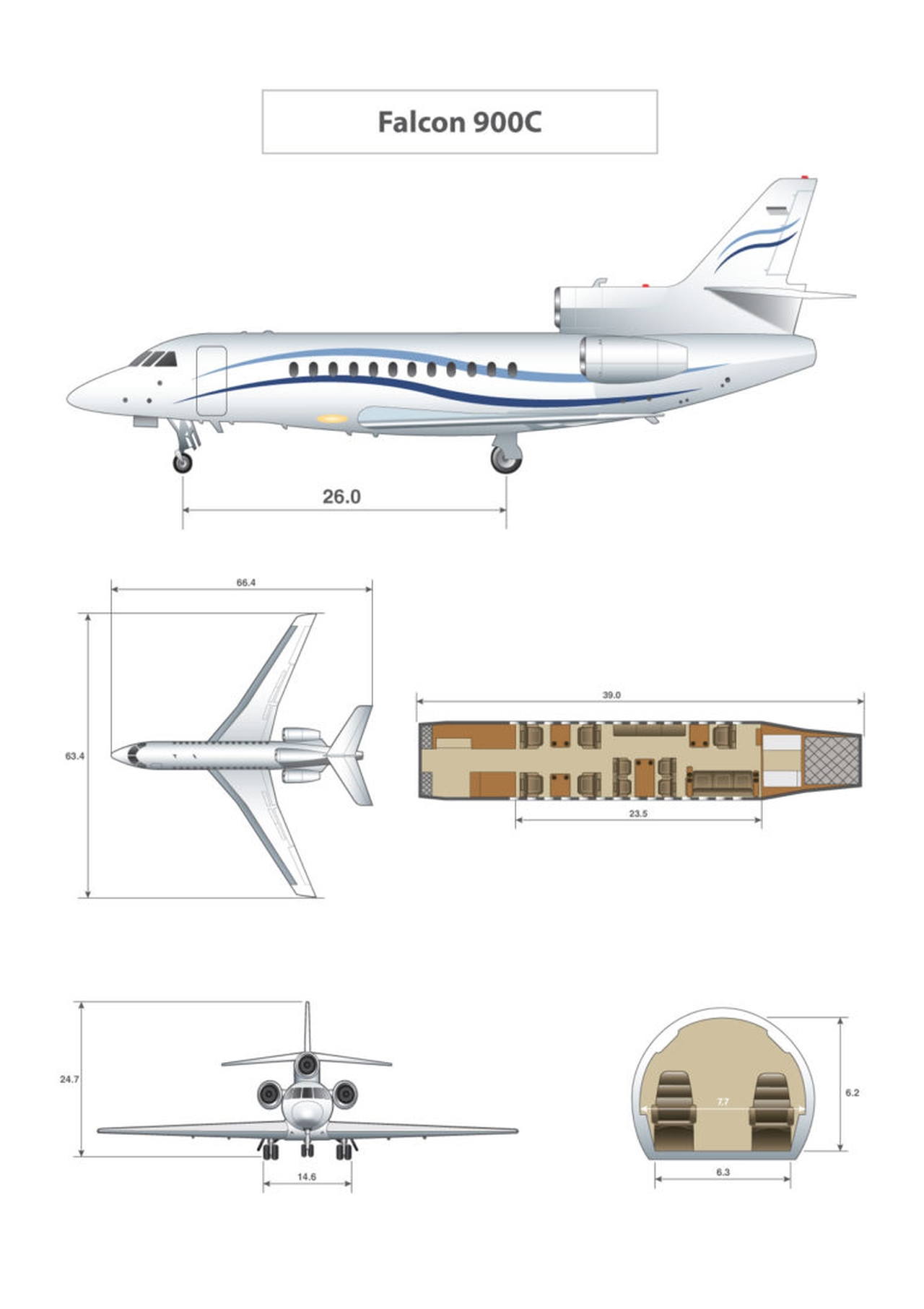 Falcon 900C plane's characteristics