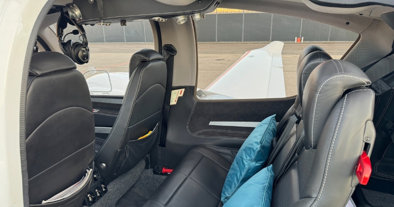 Diamond DA-62 F-HPYM accommodates up to 3 passengers. The baggage compartment volume of 0.92 m³ . The maximum flight range reaches 2376 km, depending on payload and weather conditions.