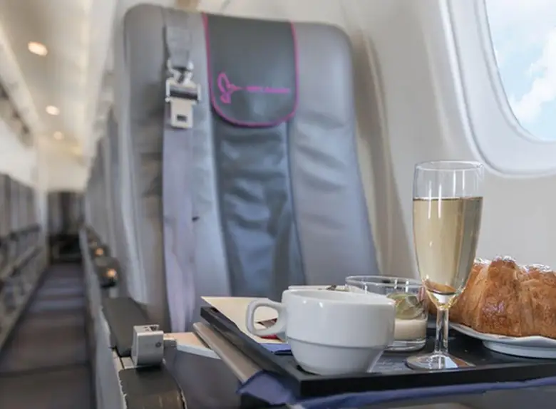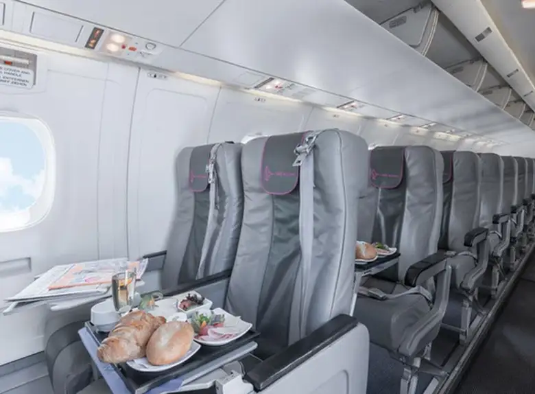 Available onboard amenities include Cabin crew , Hot meal , Lavatory .