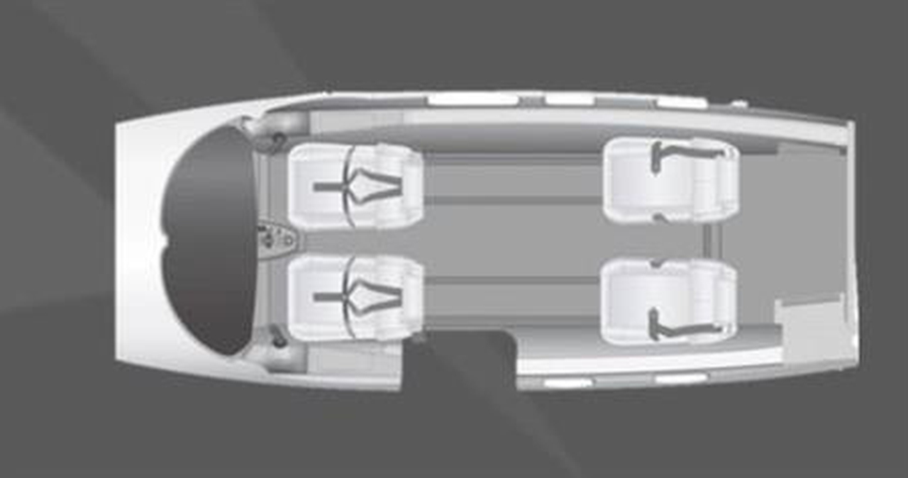 Eclipse 500 2-LISS accommodates up to 2 passengers. The baggage compartment volume of 0.45 m³ can hold up to 1 large suitcases . The maximum flight range reaches 2584 km, depending on payload and weather conditions.
