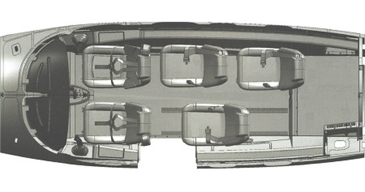 Eclipse 500 N136TE accommodates up to 3 passengers. The baggage compartment volume of 0.45 m³ can hold up to 1 large suitcases . The maximum flight range reaches 2584 km, depending on payload and weather conditions.