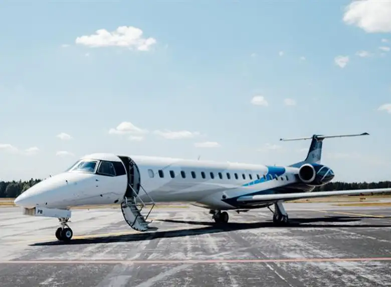 Embraer ERJ 145 S5-ASM accommodates up to 50 passengers. The baggage compartment volume of 9.2 m³ can hold up to 27 large suitcases . The maximum flight range reaches 2873 km, depending on payload and weather conditions.