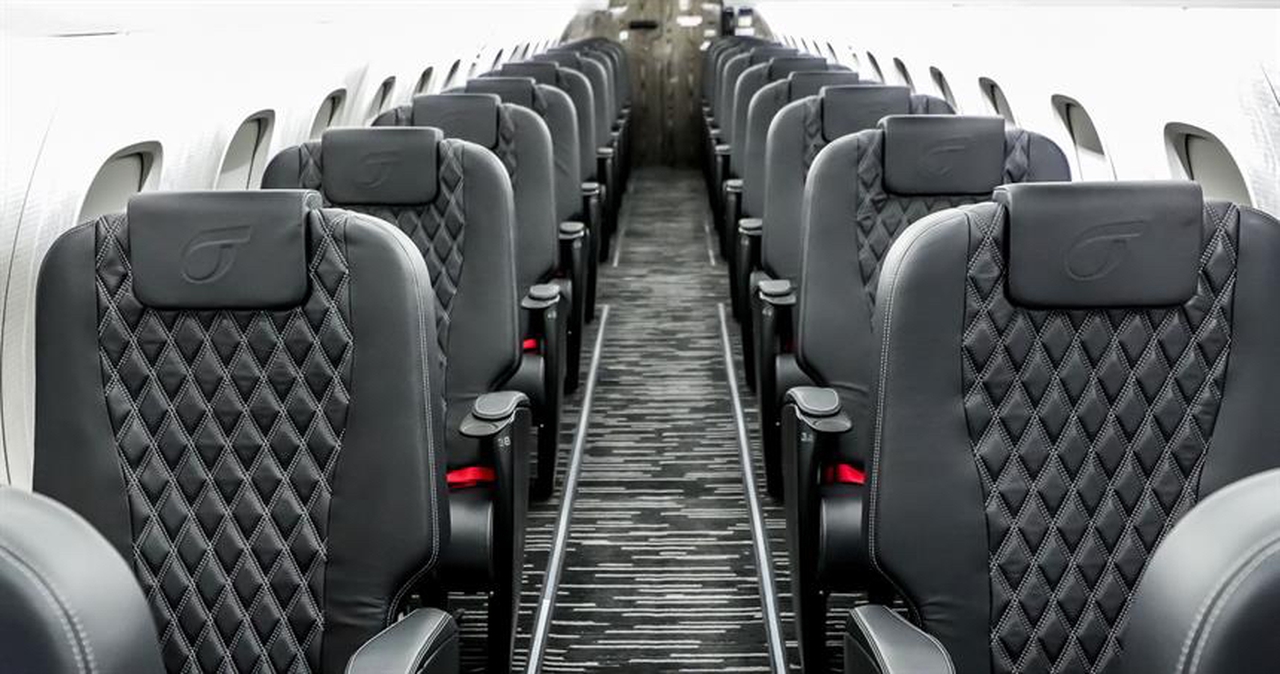 Available onboard amenities include Enclosed lavatory , Flight attendant required , Full galley , Pets allowed .