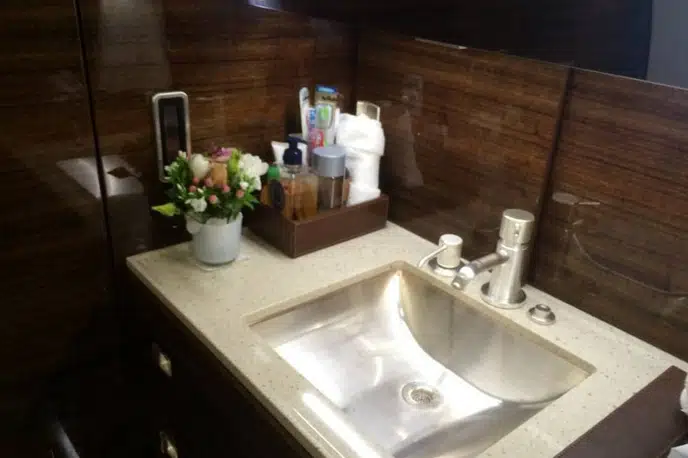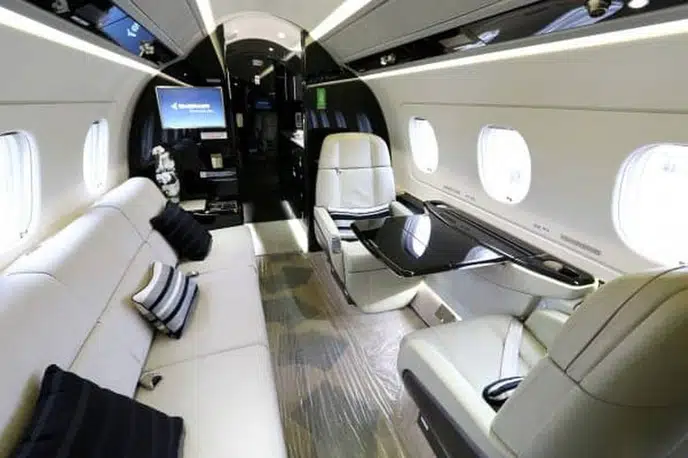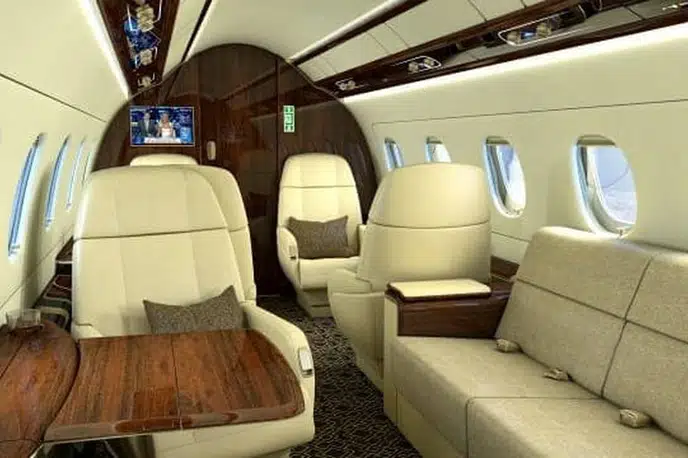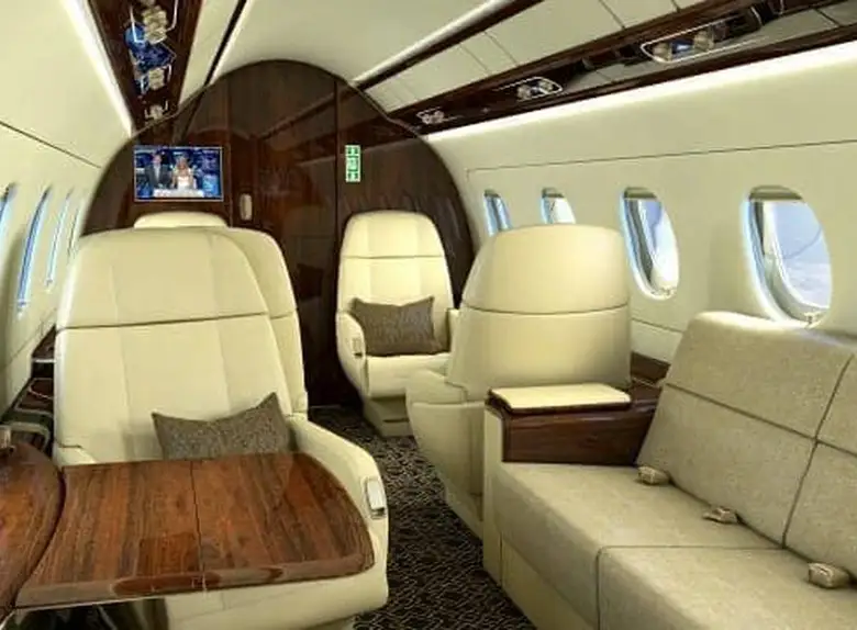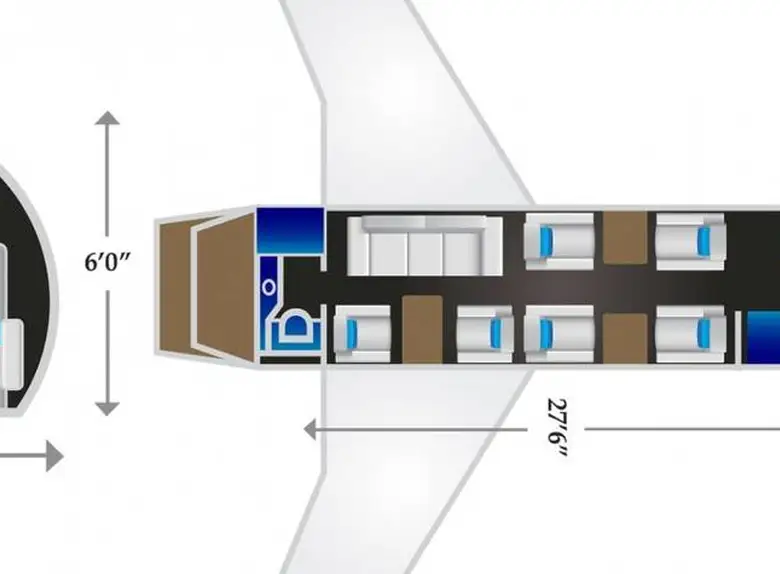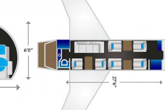 The cabin is 1.83 m high, 2.08 m wide, and 8.18 m long, allowing passengers to move freely in a stand-up environment. It seats 8 to 12 passengers, with fully reclining seats that convert into flat beds for long-haul comfort.