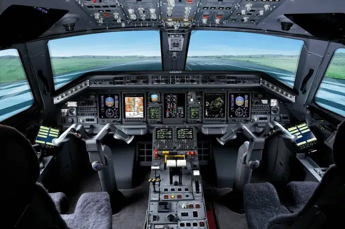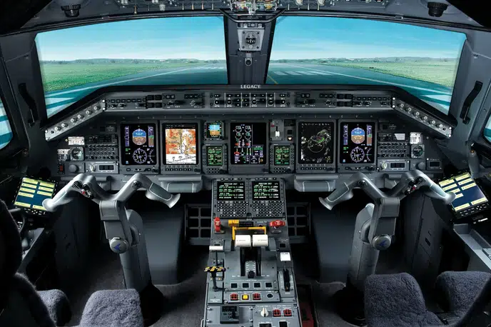 The cockpit of the Legacy 600 is equipped with an advanced Honeywell Primus Elite avionics suite:14