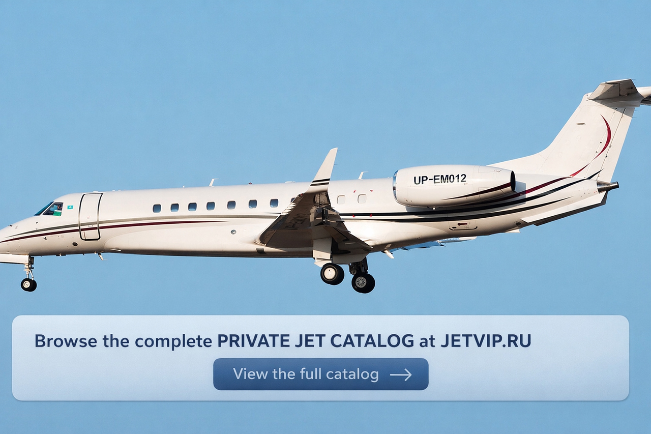 Charter availability for this aircraft is provided by FlyJet.kz. However, clients can book this jet directly through JETVIP — a professional international charter brokerage platform. We negotiate with operators, secure the best available terms, track real-time availability and ensure competitive and transparent pricing for our clients.