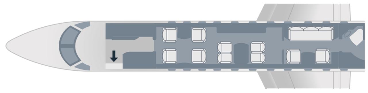 Legacy 650E D-ATOP accommodates up to 13 passengers. The baggage compartment volume of 6.8 m³ can hold up to 20 large suitcases . The maximum flight range reaches 7370 km, depending on payload and weather conditions.