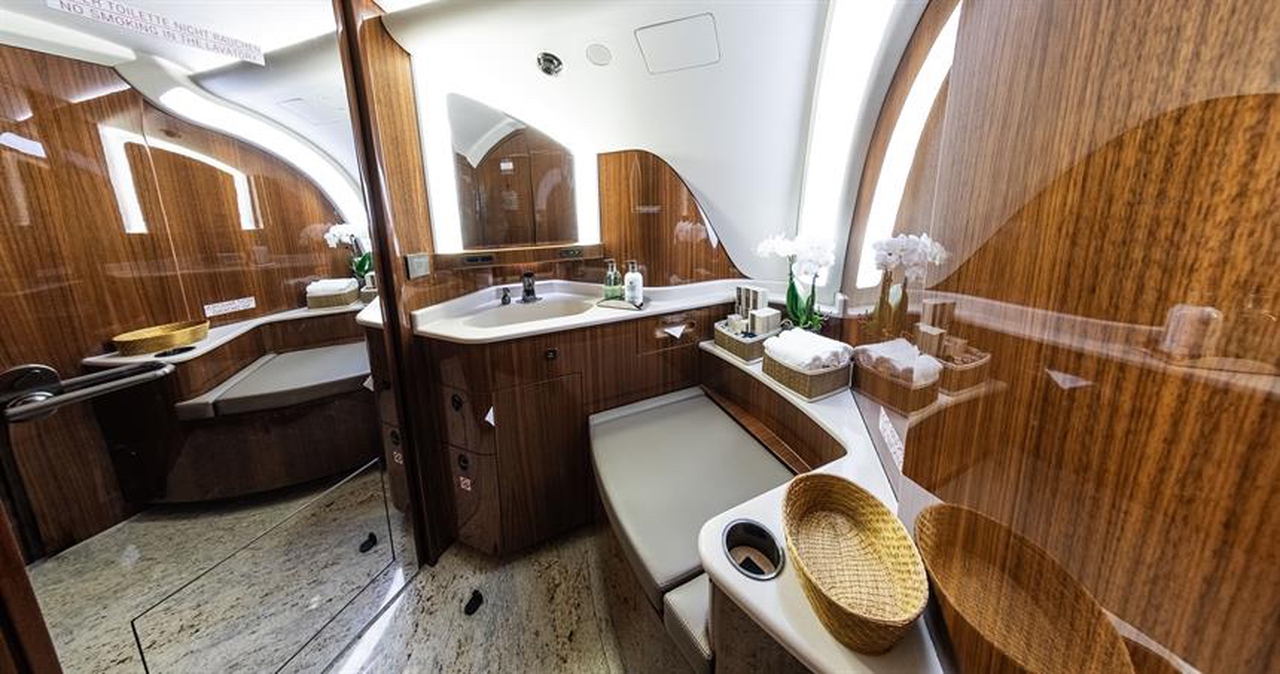 Available onboard amenities include 230V , Cabin crew , Convection oven , DVD player , Enclosed lavatory , Entertainment system , Espresso machine , Freon Air conditioning , Hot meal , IPOD station , Lavatory , Leather seats , Wi-Fi (Satellite based) .