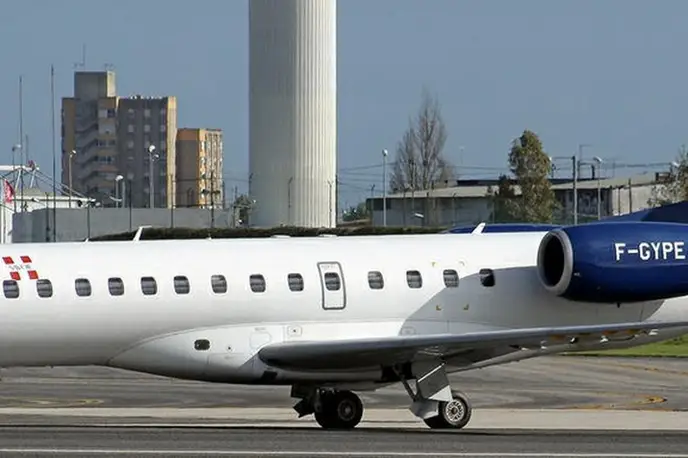 Embraer ERJ 135 F-GYPE accommodates up to 37 passengers. The baggage compartment volume of 9.2 m³ can hold up to 27 large suitcases . The maximum flight range reaches 3360 km, depending on payload and weather conditions.