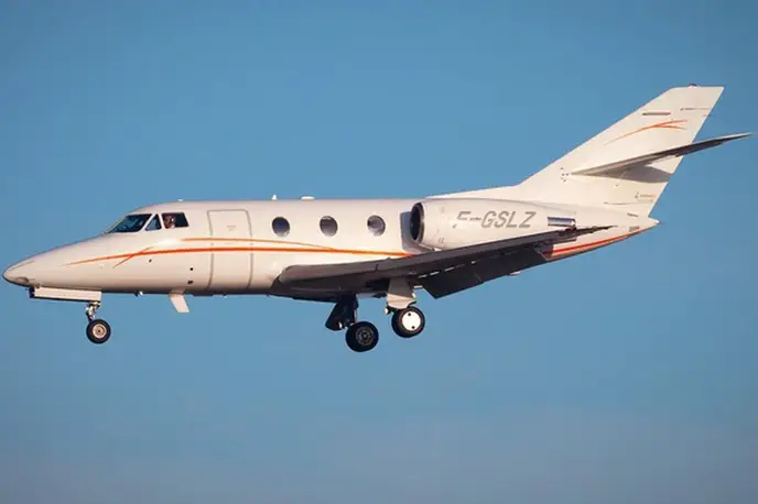 Dassault Aviation Falcon 100 F-GSLZ (Harmony Jets), Lyon Bron Airport is premium Super light jet for 7 passengers with a range of 3560 km. verified aircraft, transparent pricing, real photos and signature JETVIP ratings — reliability 88.0/100, rating 2.9/5.