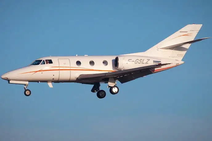 Dassault Aviation Falcon 100 F-GSLZ (Harmony Jets), Lyon Bron Airport is premium Super Light Jet jet for 7 passengers with a range of 3560 km. verified aircraft, transparent pricing, real photos and signature JETVIP ratings. Model ratings: Reliability — 88/100, Comfort — 75/100, Popularity — 2/5.