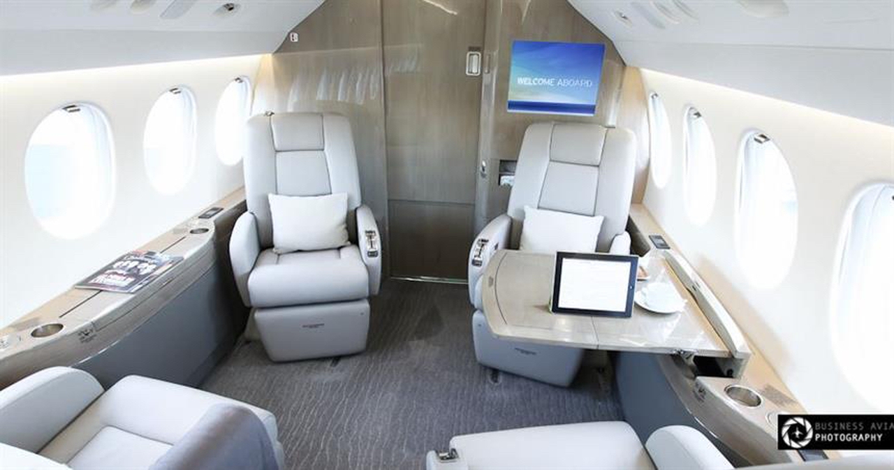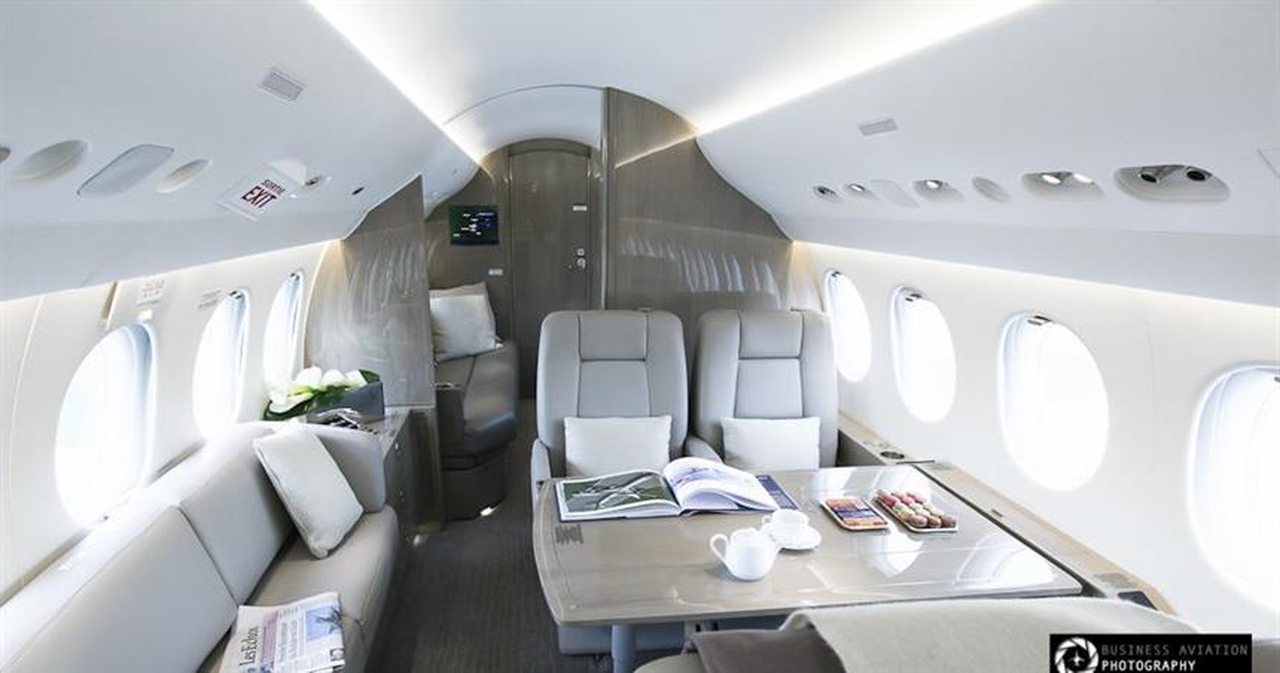 Falcon 7X F-HECD accommodates up to 13 passengers. The baggage compartment volume of 4.45 m³ can hold up to 13 large suitcases . The maximum flight range reaches 11020 km, depending on payload and weather conditions.
