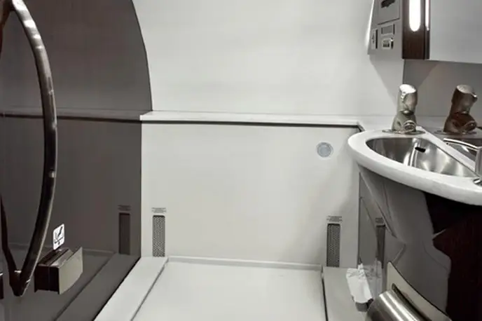 Available onboard amenities include Cabin crew , Entertainment system , Hot meal , Lavatory .