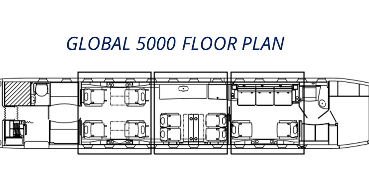 Global 5000 OY-GCE accommodates up to 6 passengers. The baggage compartment volume of 5.24 m³ can hold up to 15 large suitcases . The maximum flight range reaches 8890 km, depending on payload and weather conditions.
