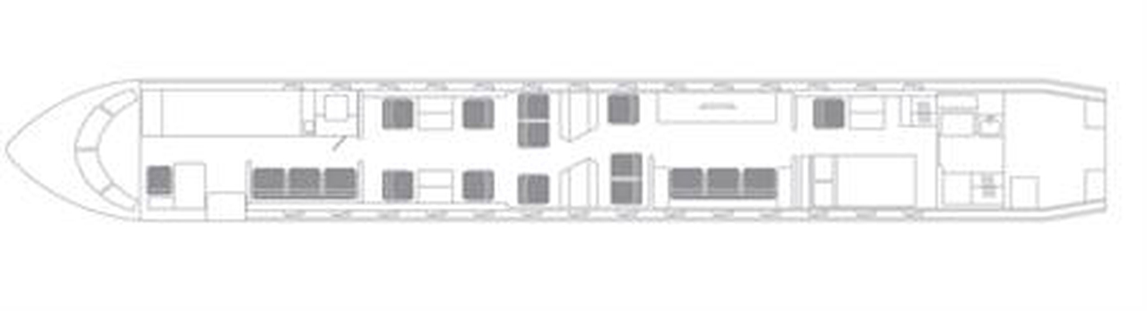 Global 7500 9H-VID accommodates up to 14 passengers. The baggage compartment volume of 5.5 m³ can hold up to 16 large suitcases . The maximum flight range reaches 14260 km, depending on payload and weather conditions.