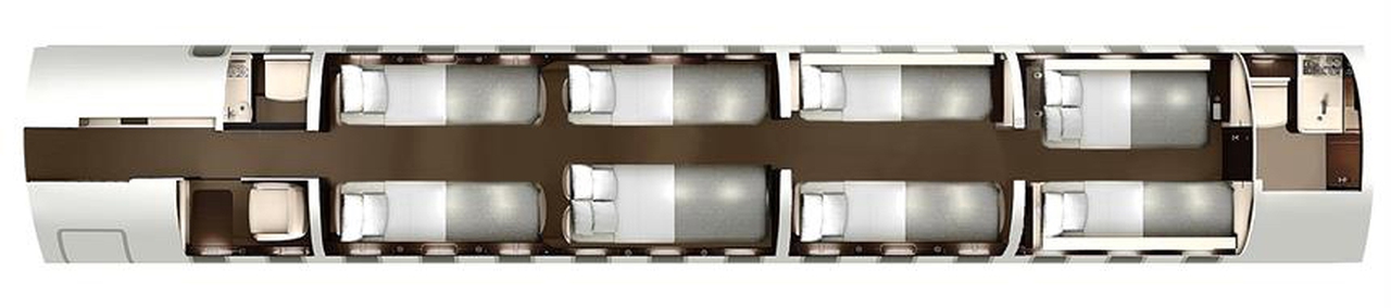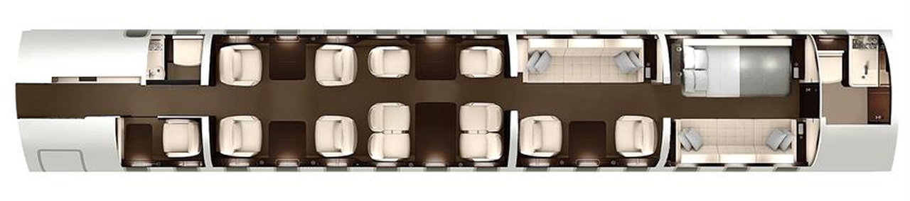 Global 7500 D-AGLO accommodates up to 8 passengers. The baggage compartment volume of 5.5 m³ can hold up to 16 large suitcases . The maximum flight range reaches 14260 km, depending on payload and weather conditions.