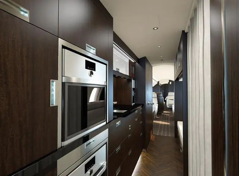 Available onboard amenities include Cabin crew , Entertainment system , Hot meal , Lavatory , Owner's approval required , Satellite phone .