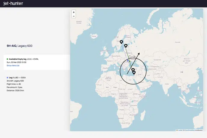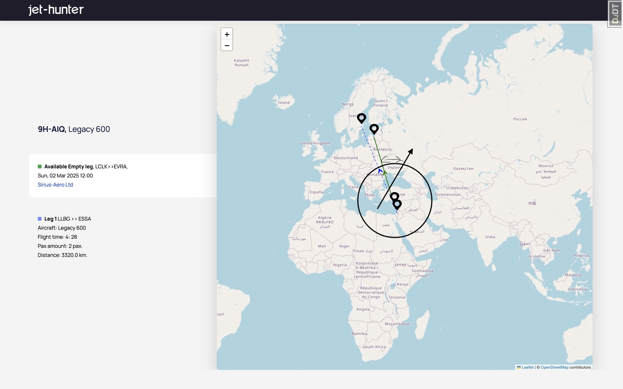 Charter availability for this aircraft is provided by Sirius-Aero Ltd. However, clients can book this jet directly through JETVIP — a professional international charter brokerage platform. We negotiate with operators, secure the best available terms, track real-time availability and ensure competitive and transparent pricing for our clients.