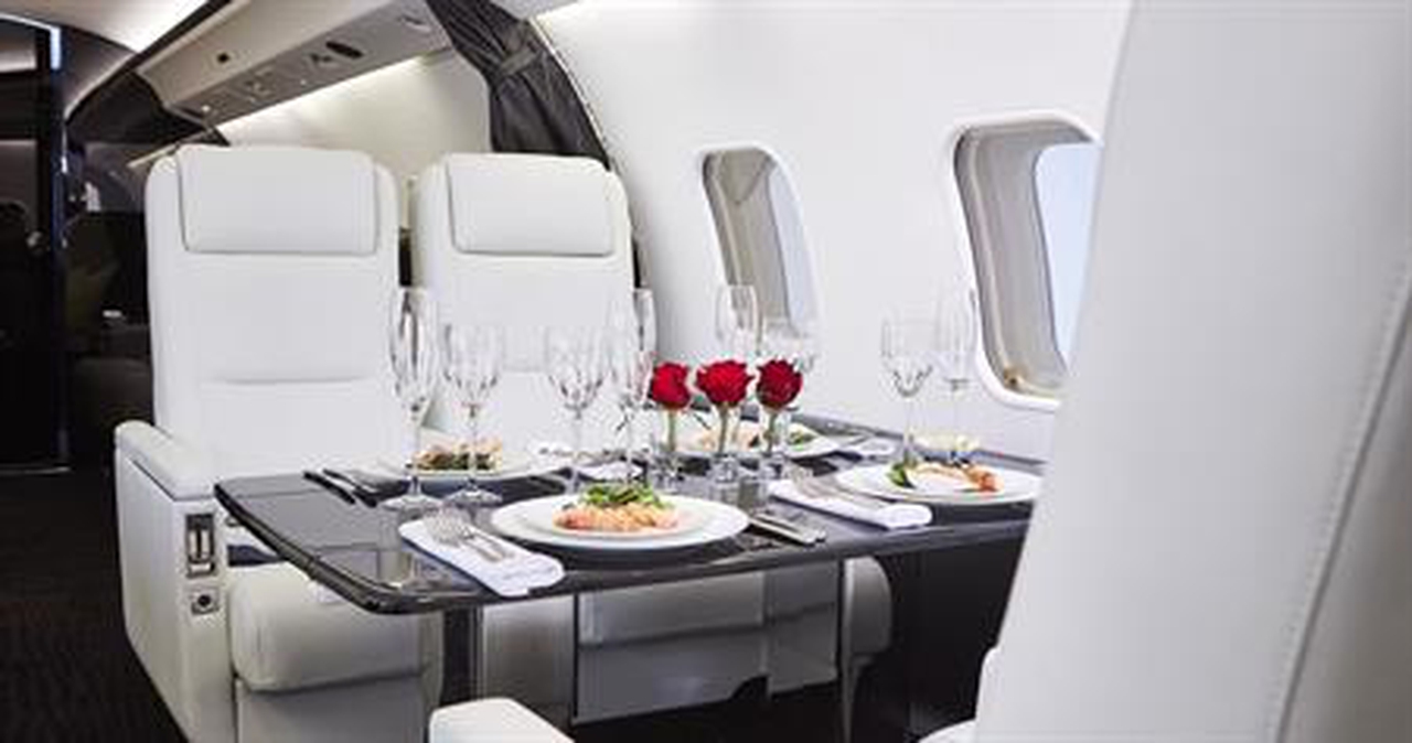 Available onboard amenities include Enclosed lavatory , Leather seats , Microwave oven , Satellite phone , Vacuum toilet , Video monitors , WI-FI (Ground based) .