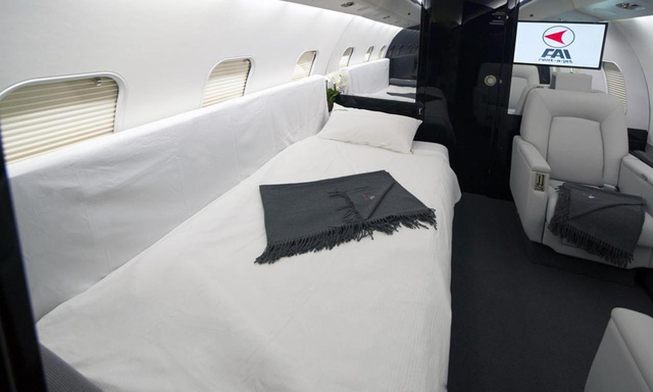 Global Express XRS D-AXTM accommodates up to 13 passengers. The baggage compartment volume of 5.52 m³ can hold up to 16 large suitcases . The maximum flight range reaches 11389 km, depending on payload and weather conditions.