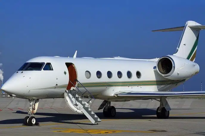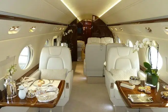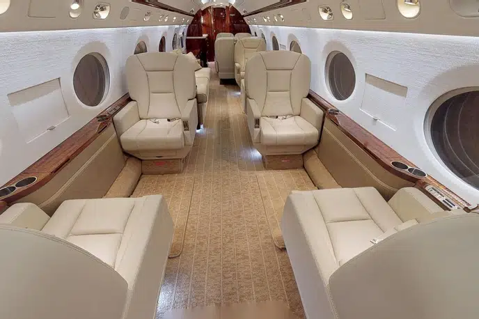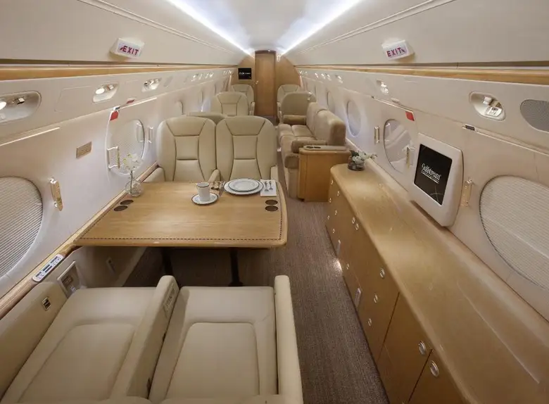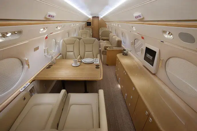 The Gulfstream 350 is the next in line of business jet after the successful 300. However, the 350 is more similar in interior features, aerodynamic design and advanced cockpit to its superior counterpart, the Gulfstream 450. The only difference between the jets is range: the 350’s range is 3,797 nautical miles while the 450’s is 4,349 nm.