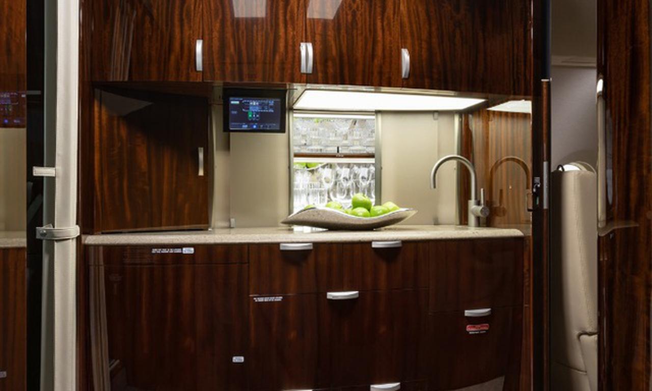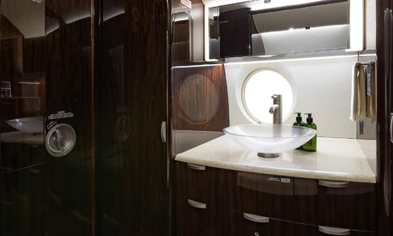 Gulfstream G280 N968UD accommodates up to 10 passengers. The baggage compartment volume of 4.2 m³ can hold up to 12 large suitcases . The maximum flight range reaches 6667 km, depending on payload and weather conditions.
