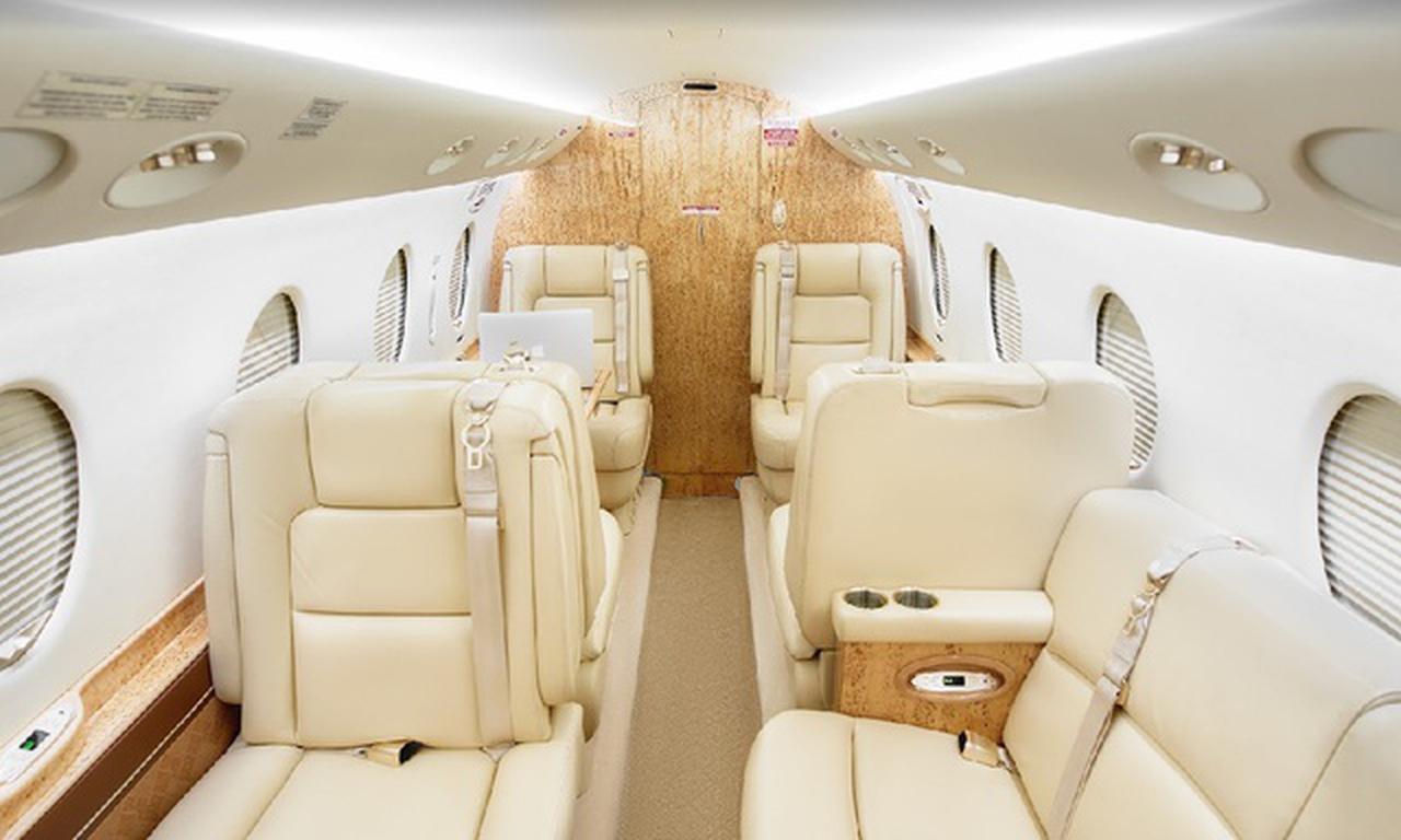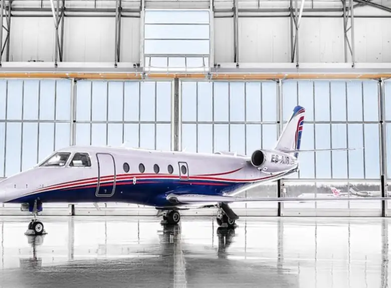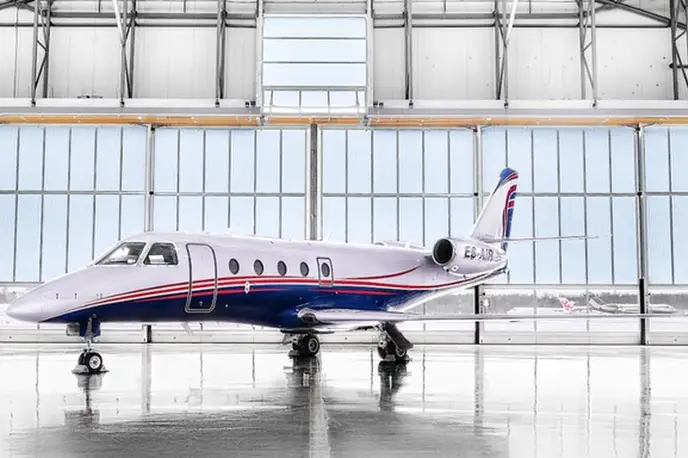 Gulfstream G150 ES-AIR accommodates up to 7 passengers. The baggage compartment volume of 1.6 m³ can hold up to 4 large suitcases . The maximum flight range reaches 5467 km, depending on payload and weather conditions.