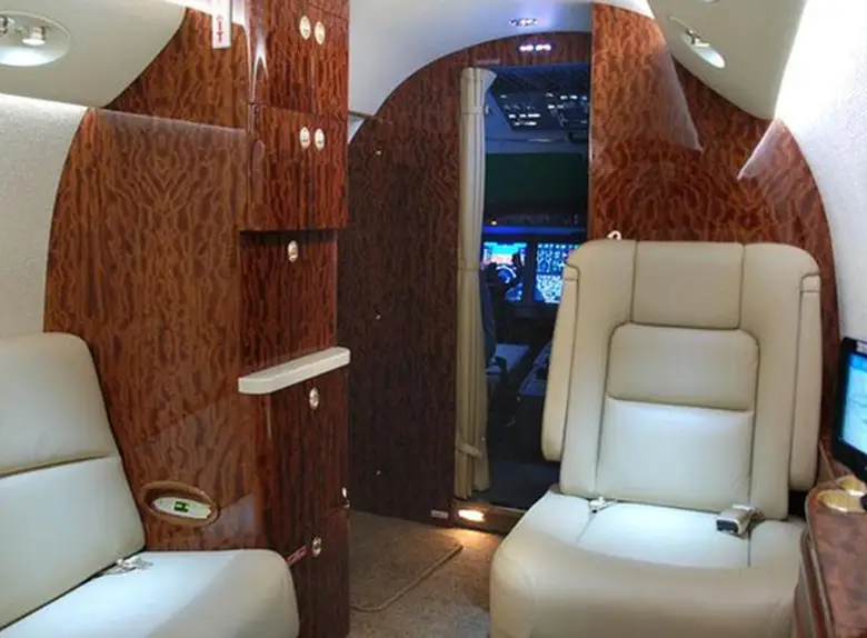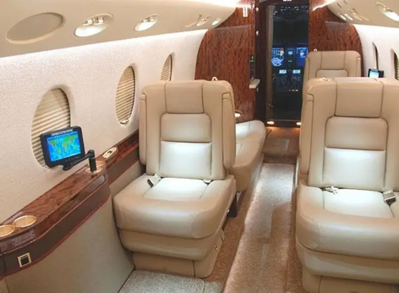 Gulfstream G150 N5950C accommodates up to 8 passengers. The baggage compartment volume of 1.6 m³ can hold up to 4 large suitcases . The maximum flight range reaches 5467 km, depending on payload and weather conditions.