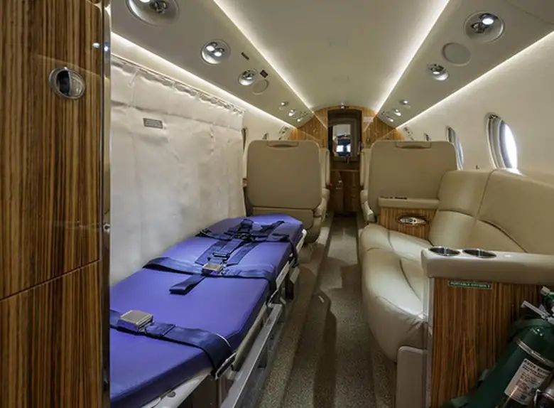 Available onboard amenities include Adult critical care , Lavatory , Medical ramp .