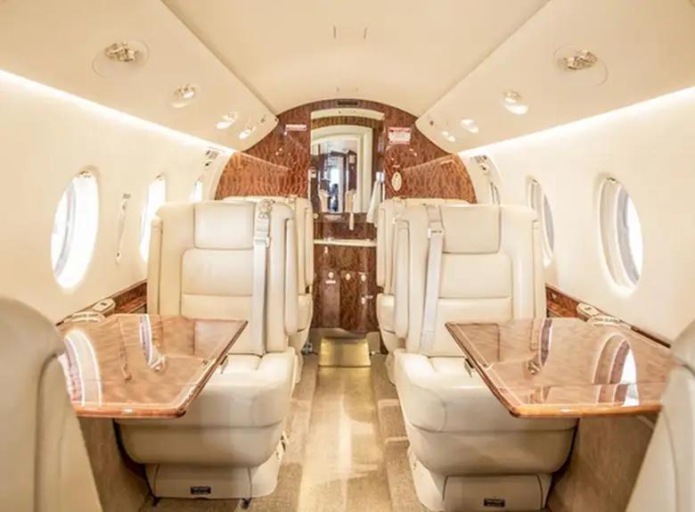 Gulfstream G150 XA-CPL accommodates up to 9 passengers. The baggage compartment volume of 1.6 m³ can hold up to 4 large suitcases . The maximum flight range reaches 5467 km, depending on payload and weather conditions.