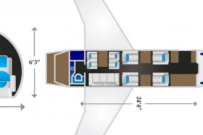 - Spacious and Comfortable Cabin: The G200 offers one of the largest cabins in its class, with a cabin length of 7.44 m (24.4 ft), a width of 2.18 m (7.2 ft), and a height of 1.91 m (6.3 ft). Comfortable seating for 8-10 passengers in a two or three-zone configuration.