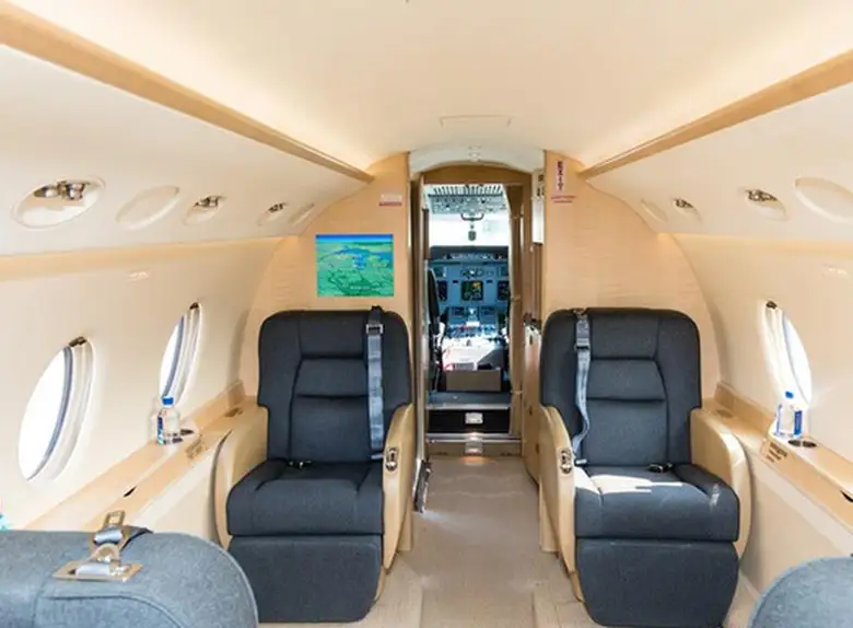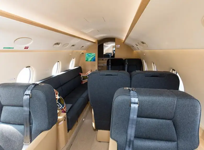 Gulfstream G200 N180LD accommodates up to 10 passengers. The baggage compartment volume of 4.2 m³ can hold up to 12 large suitcases . The maximum flight range reaches 6301 km, depending on payload and weather conditions.