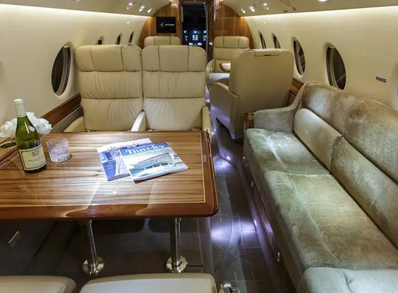 Gulfstream G200 N1MK accommodates up to 8 passengers. The baggage compartment volume of 4.2 m³ can hold up to 12 large suitcases . The maximum flight range reaches 6301 km, depending on payload and weather conditions.