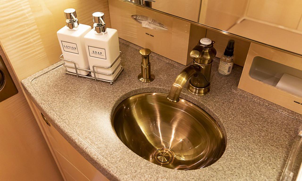 Available onboard amenities include Cabin crew , Hot meal , Lavatory , Satellite phone .
