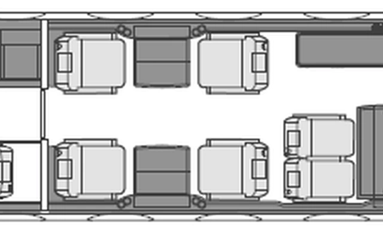 Gulfstream G550 HB-JAZ accommodates up to 8 passengers. The baggage compartment volume of 6.4 m³ can hold up to 19 large suitcases . The maximum flight range reaches 12501 km, depending on payload and weather conditions.