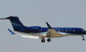 Gulfstream G550 N890A . The baggage compartment volume of 6.4 m³ can hold up to 19 large suitcases . The maximum flight range reaches 12501 km, depending on payload and weather conditions.