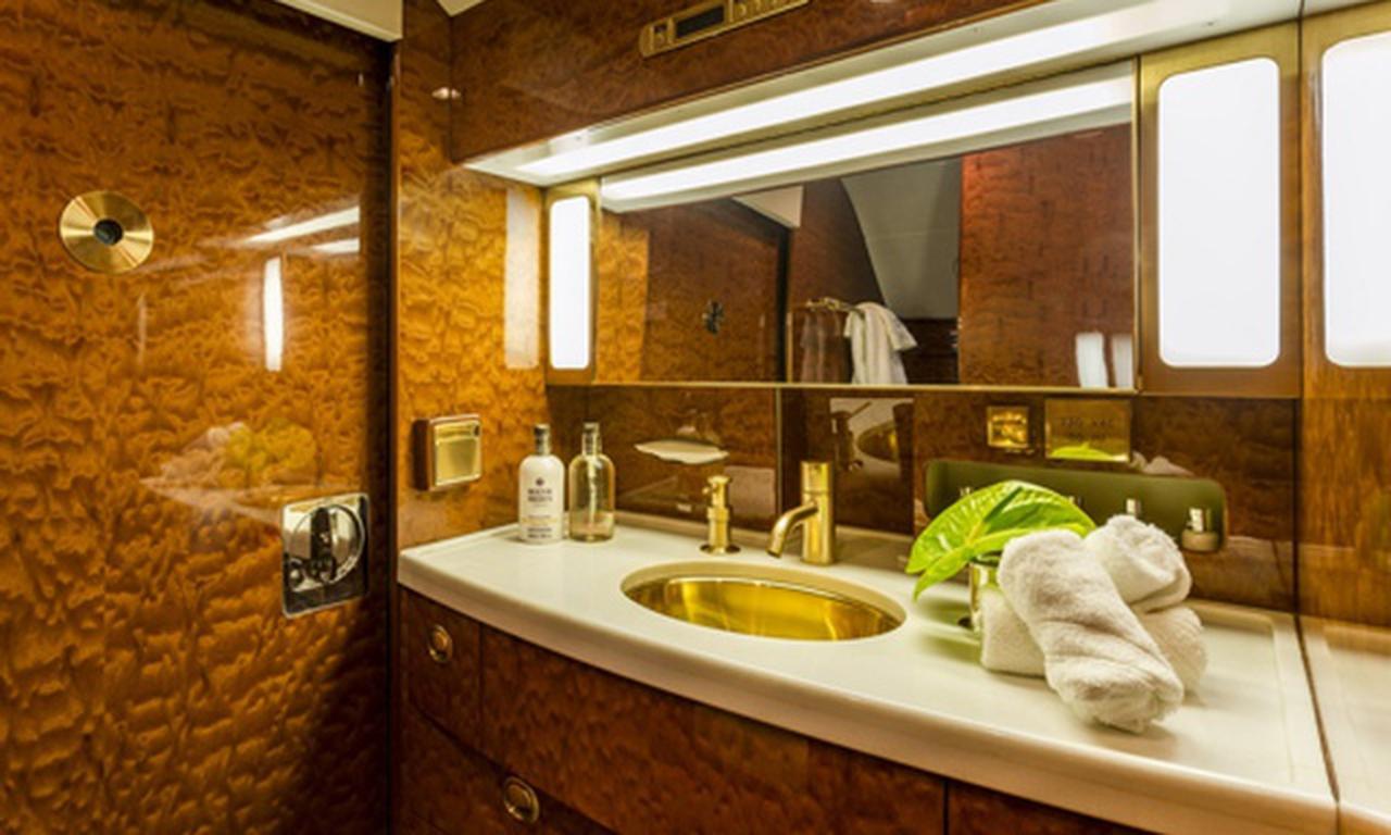Available onboard amenities include Cabin crew , Entertainment system , Hot meal , Lavatory , Owner's approval required , Pets allowed , Satellite phone .