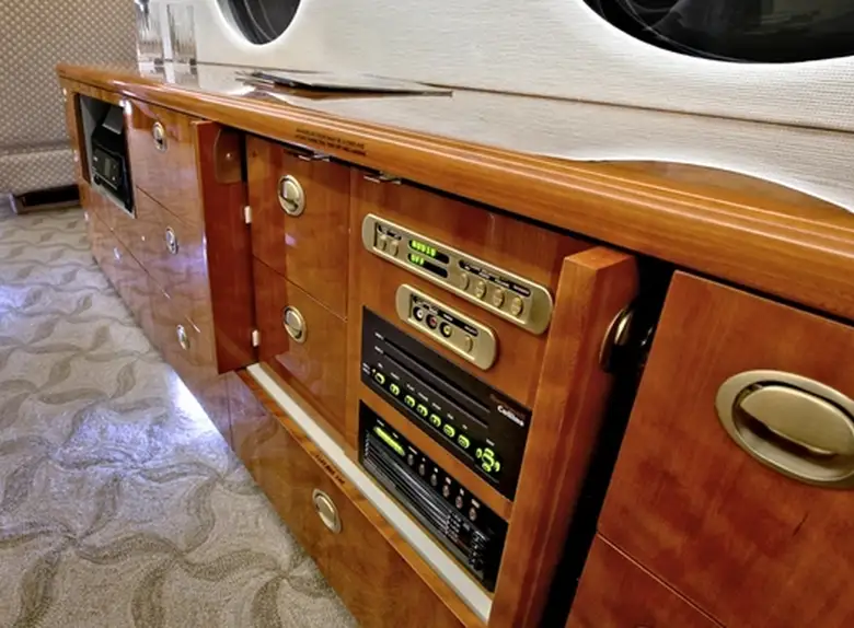 Gulfstream G550 VP-BLW accommodates up to 16 passengers. The baggage compartment volume of 6.4 m³ can hold up to 19 large suitcases . The maximum flight range reaches 12501 km, depending on payload and weather conditions.