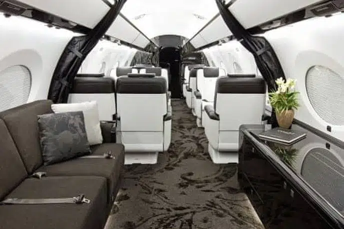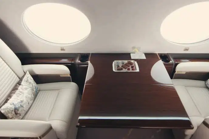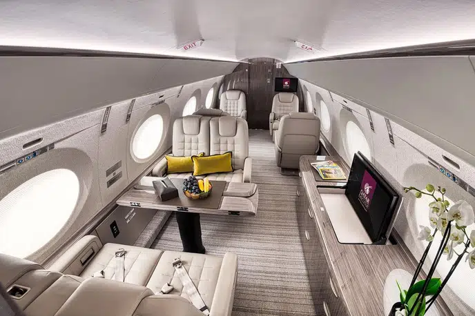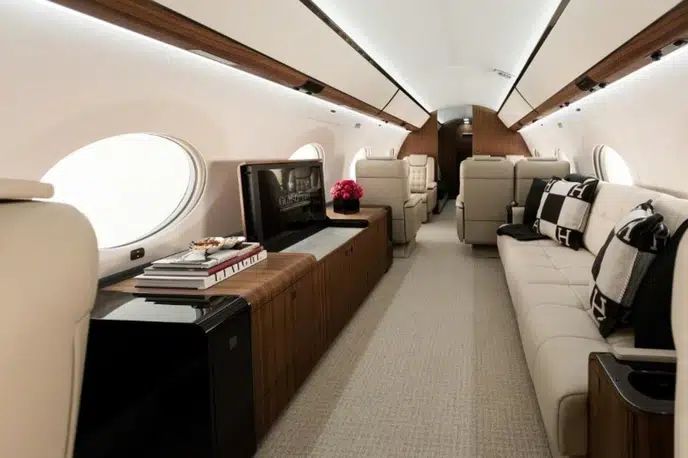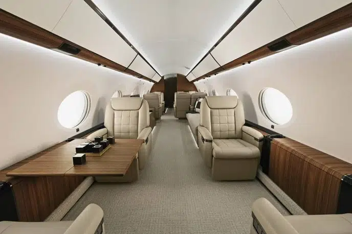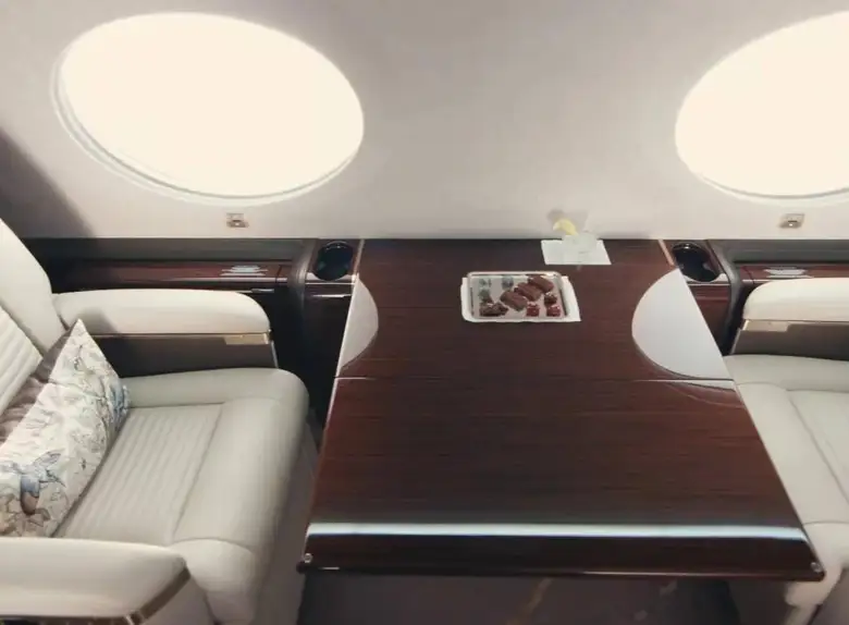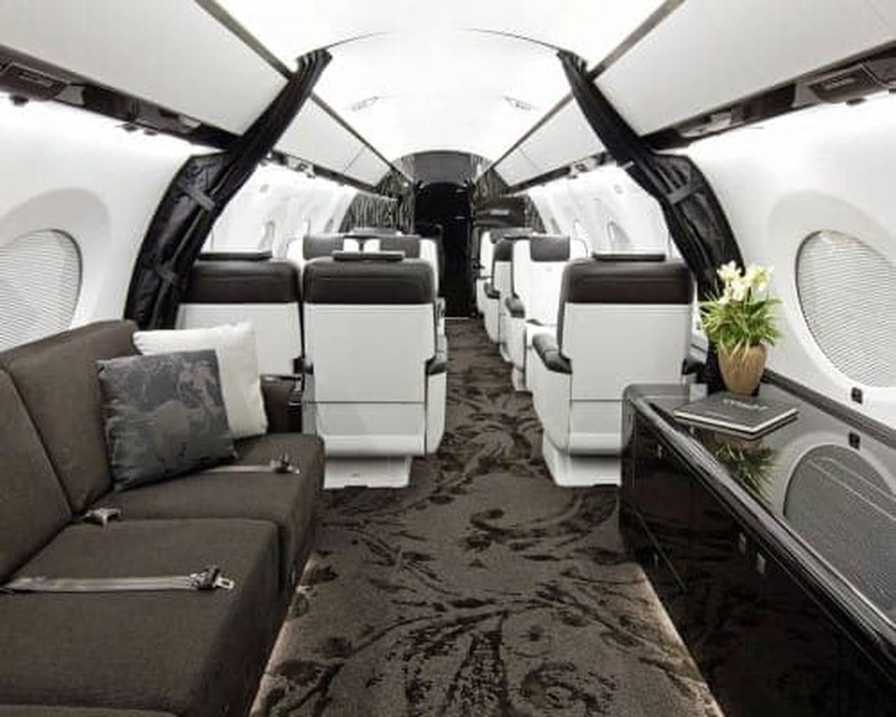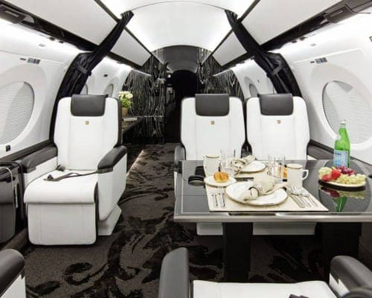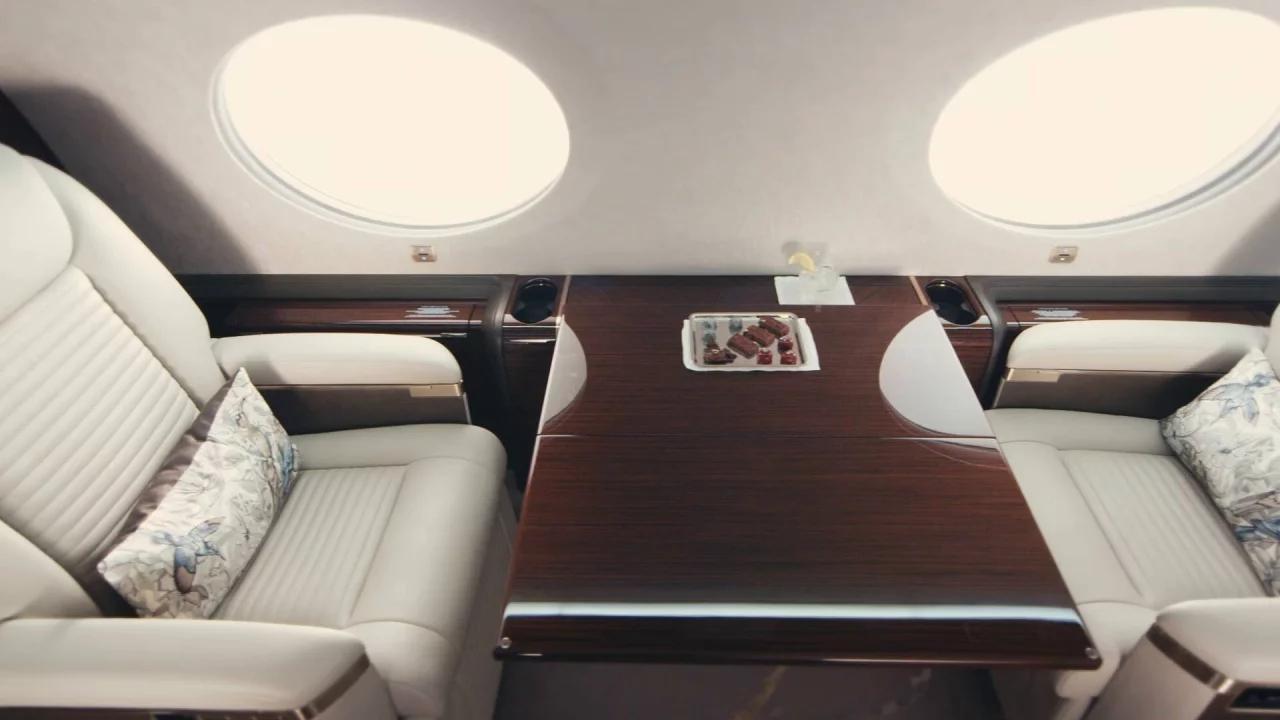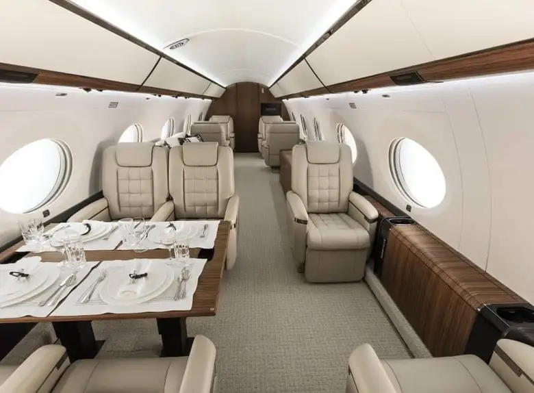 The cabin of the Gulfstream G650ER is an embodiment of luxury and comfort. The spacious and bright interior can be configured to the individual preferences of the owner or charterer, offering various layout options, including separate zones for work, relaxation, dining, and sleeping.