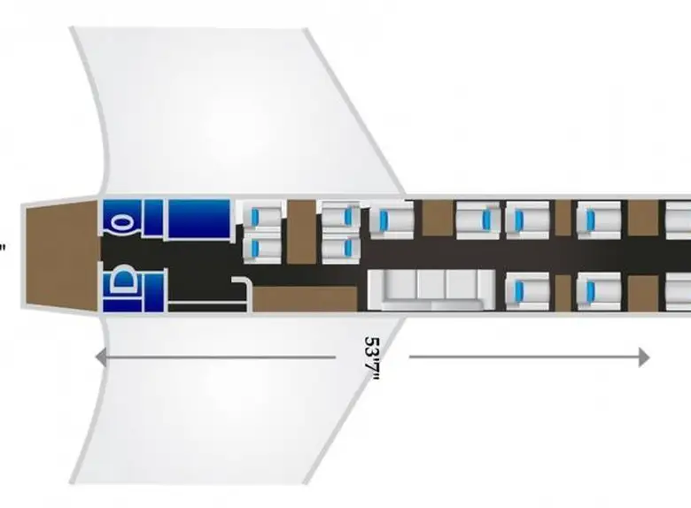 - Cabin Length: 16.33 m (53 ft 7 in)
