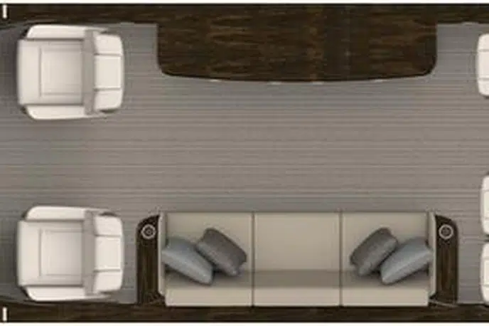 The spacious Gulfstream G700 cabin offers the flexibility to configure up to five individual living areas, allowing you to create the perfect space to work, relax, and entertain. Gulfstream's panoramic oval windows flood the cabin with natural light, providing stunning views during your flight. The innovative Gulfstream Symmetry Flight Deck™ circadian lighting system helps minimize jet lag, ensuring your well-being even after the longest flights. Advanced safety and flight management technologies provide peace of mind and confidence at every step of the journey.